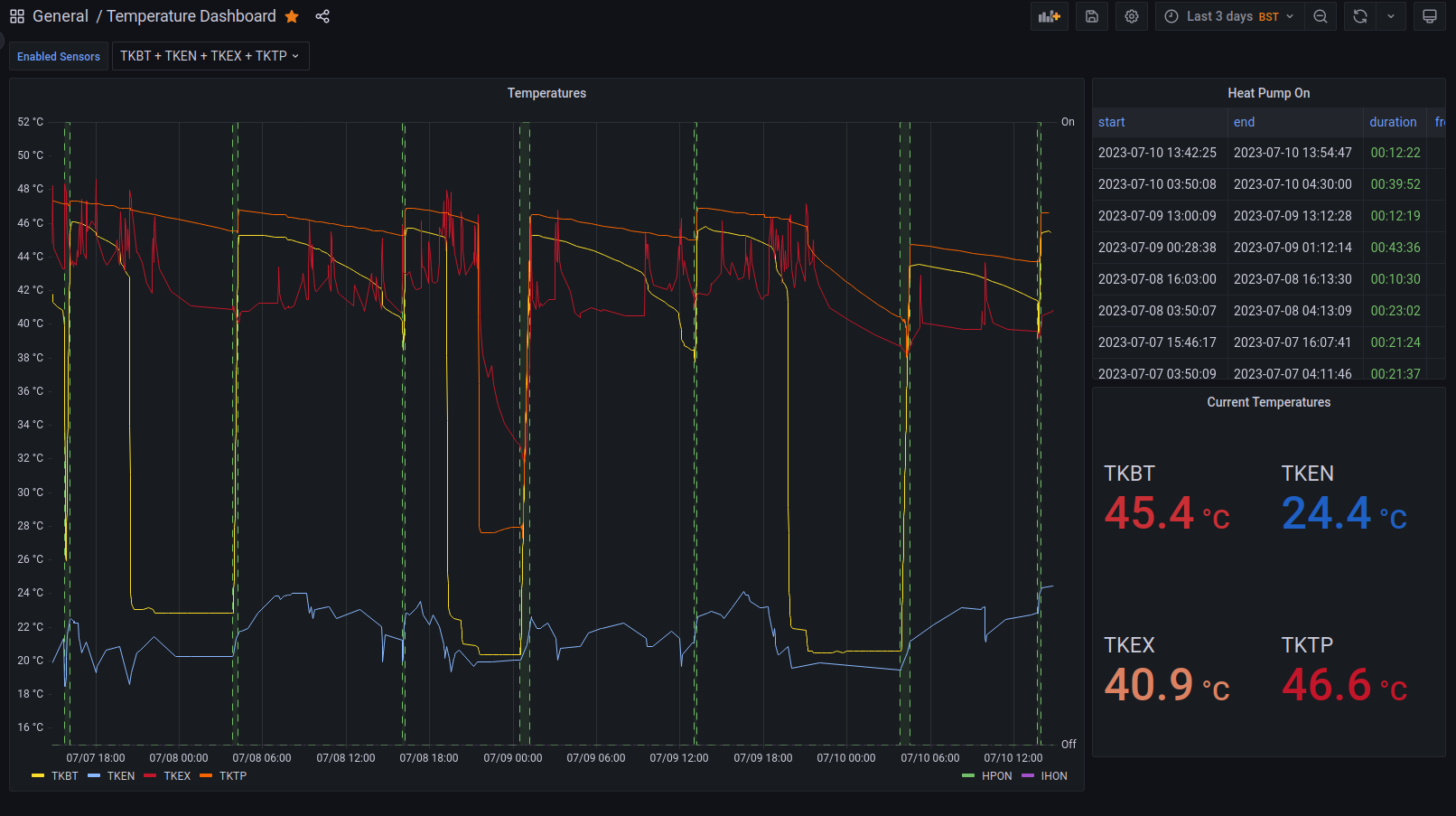 All temperatures are stored in database after sampling so that they can be reviewed along with the actions taken by the program. After my Work Experience at Lisi Aerospace, where they showed me Grafana, I implemented in order to display the state of the heating